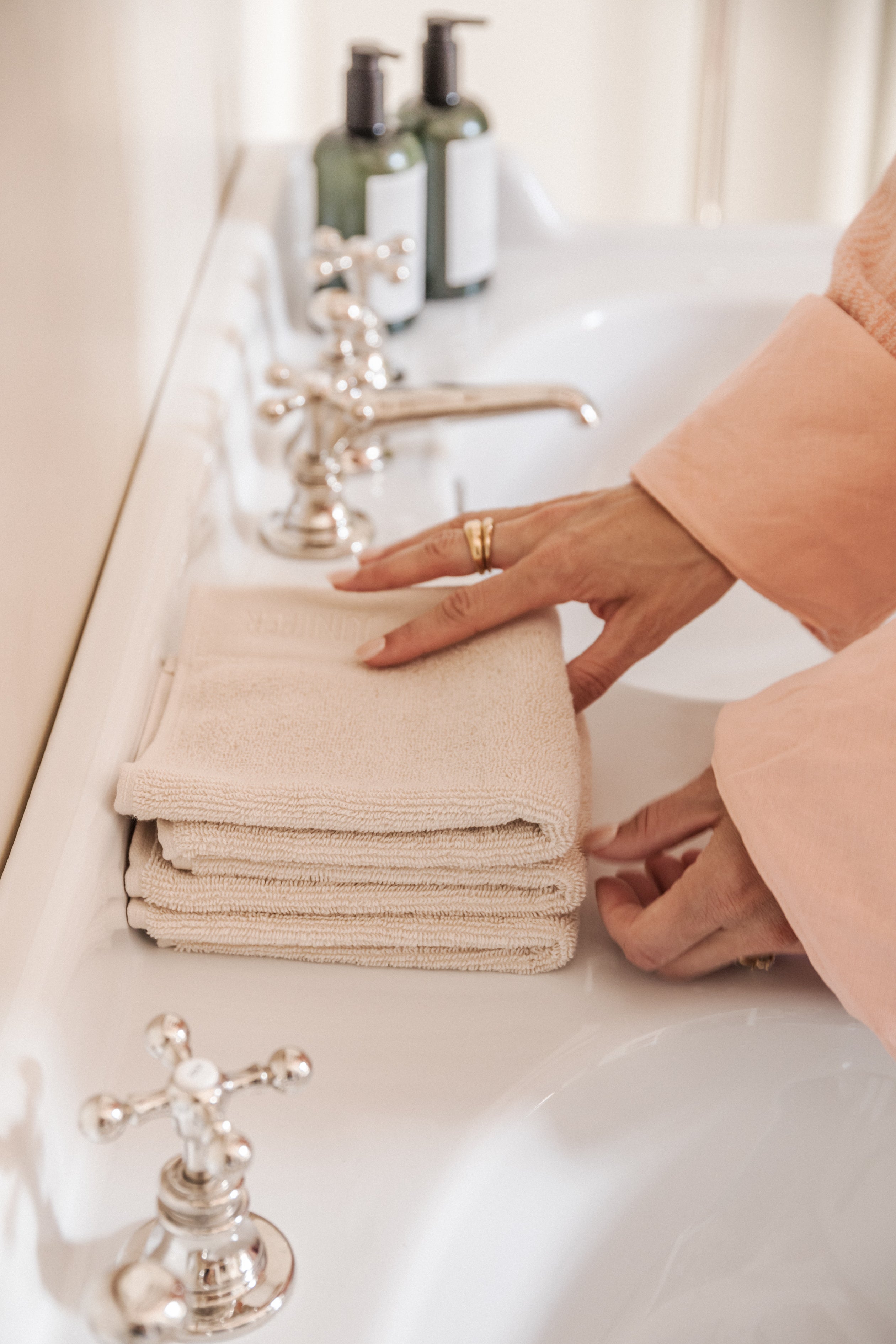 A dedicated face towel, always clean and always in the same place, changes the experience completely. The fabric touching your skin is soft, dry and predictable. Your body reads that as care, not efficiency.