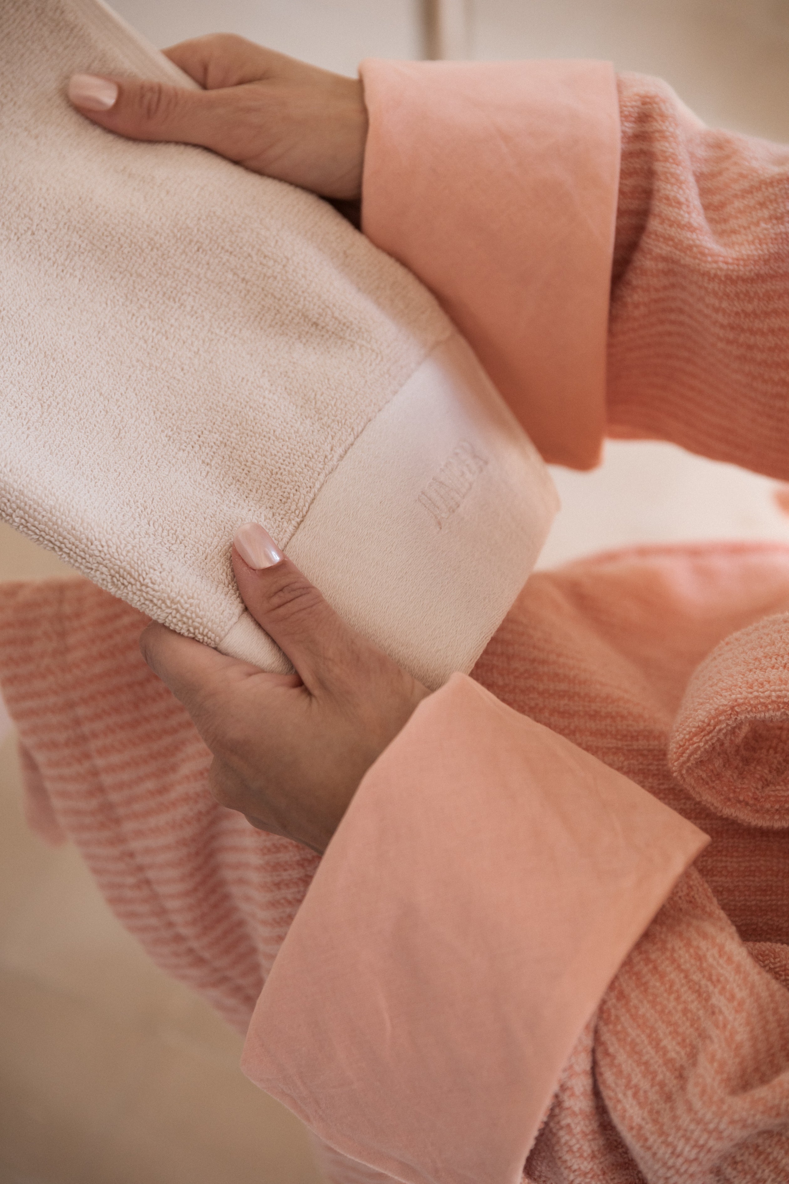 Putting it on straight after a shower or the moment you get out of bed and head to the bathroom, gives your body permission to slow down. That’s exactly why I wanted our Juniper robe to feel generous and soft: like a pause before the day begins.