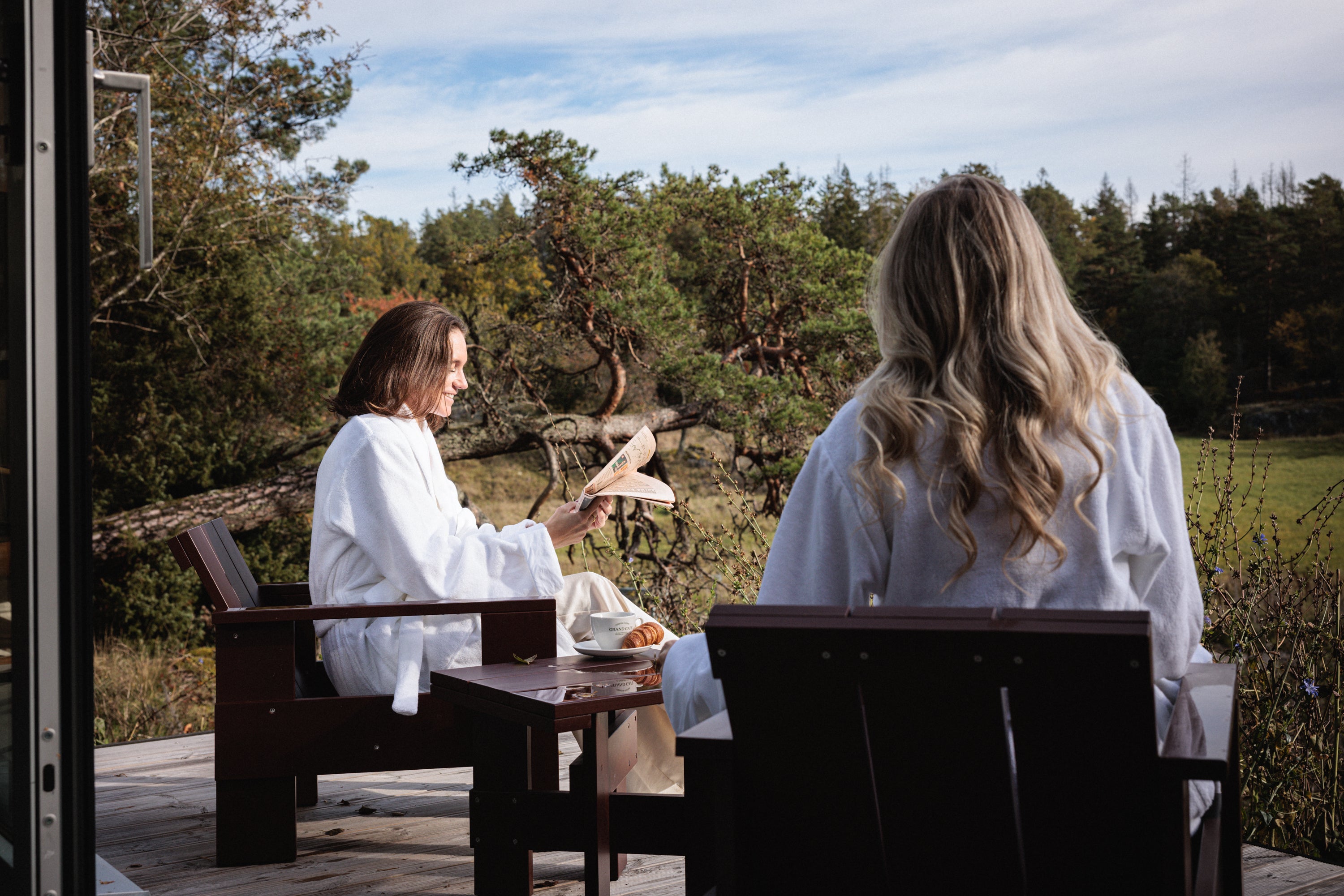 Guests often speak of how peaceful they sleep here. Perhaps it’s the silence of the forest. Perhaps it’s the combination of Videung beds and Juniper sheets, a pairing that embodies Swedish excellence in both comfort and sustainability.