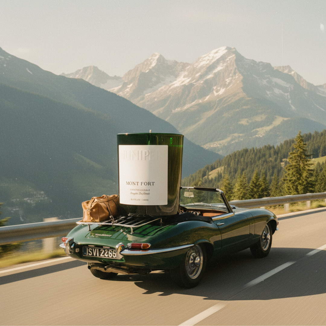 Our signature fragrance Mont Fort expresses a top note of Juniper berries and Bergamot. A middle note of pine, leather, and patchouli. And a base note of Tonka bean and musk.