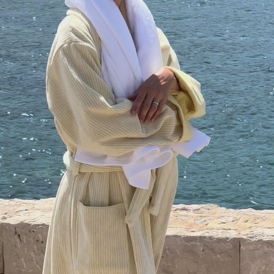 The Finca Bathrobe - Striped Lemon Yellow