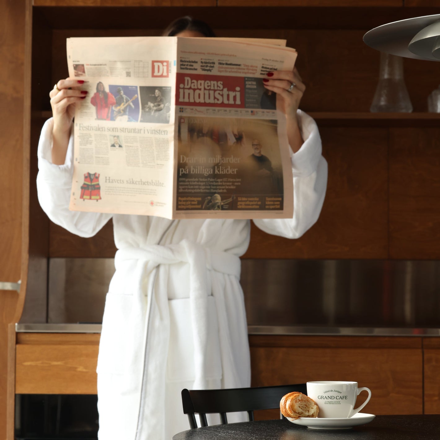 Available only in Snow White as elegant as it is cosy. Made from the same soft 100% Supima Cotton as our Finca Bathrobe, it brings that quiet hotel feeling home. Just add coffee and room service (optional).