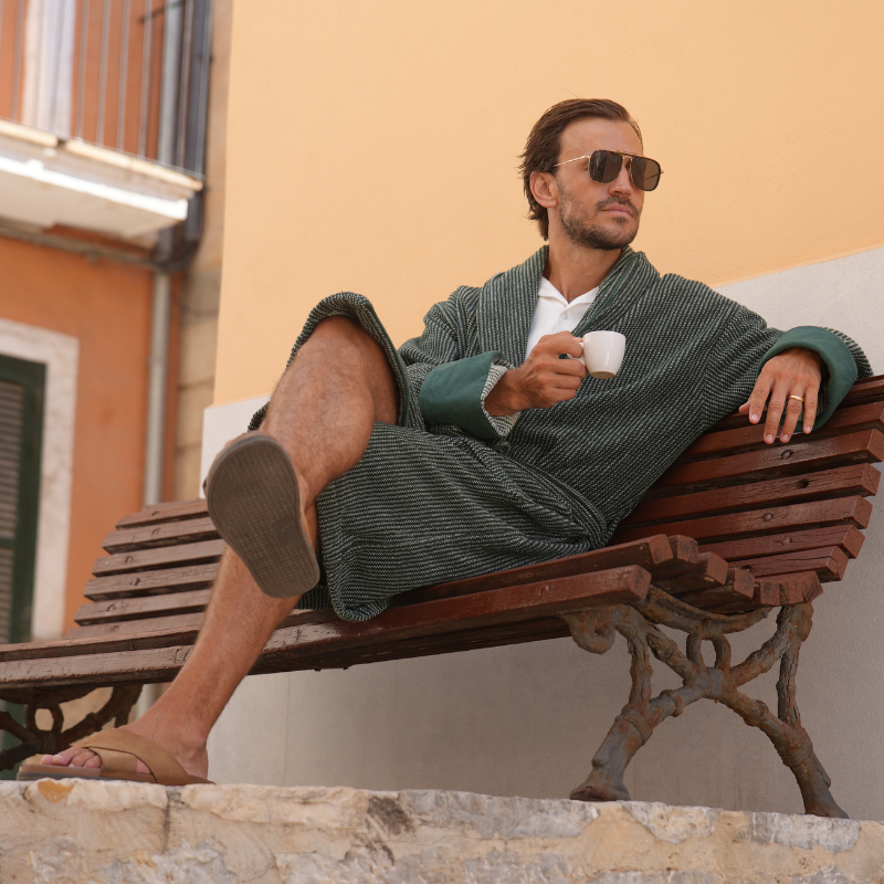 VÀvd av 100% Supima Cotton - mjuk, tung och tillverkad med den typ av uppmÀrksamhet pÄ detaljer som han kommer att uppskatta. Det hÀr Àr morgonrocken som han kommer att leva i under lugna morgnar och som fÄr den första koppen kaffe att kÀnnas lite mer som en lördagmorgon.