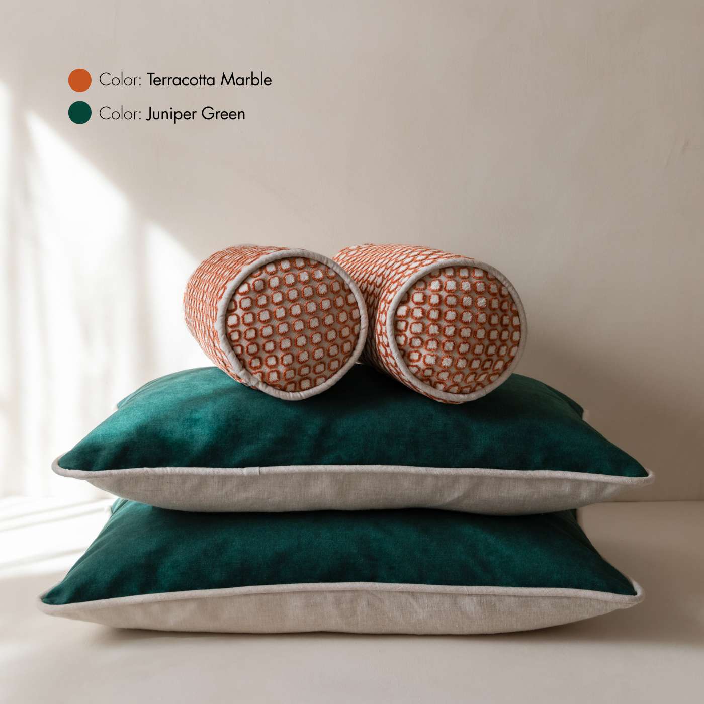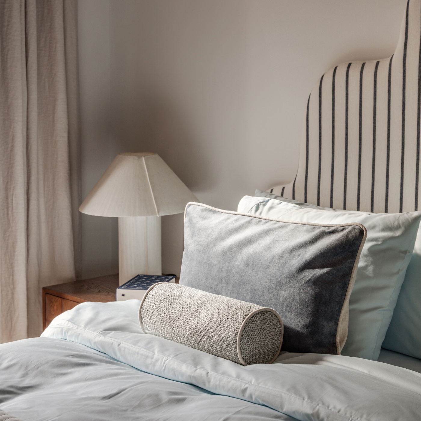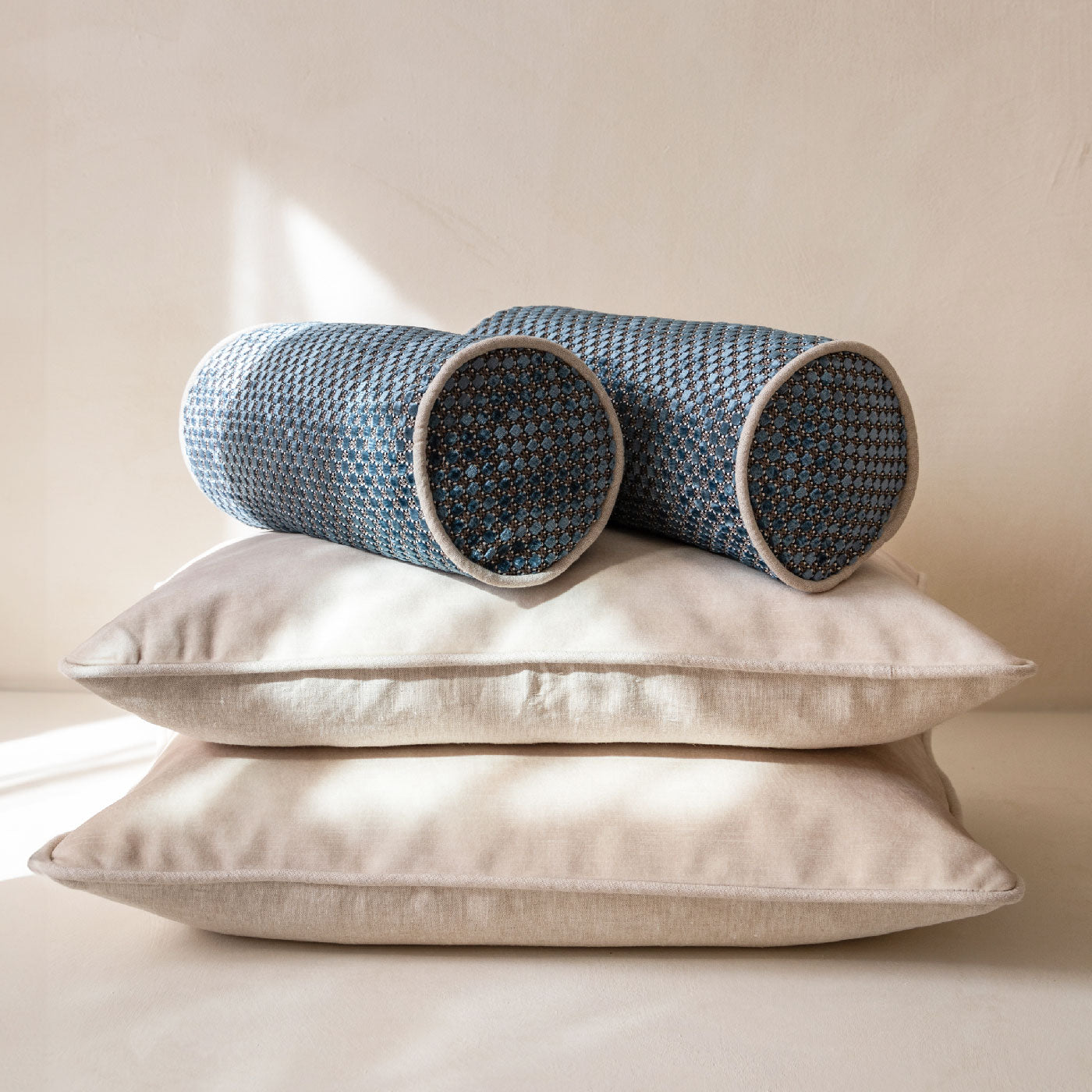 VÄra dekorationskuddar Àr designade för att harmonisera med Junipers sÀngklÀder. HÀr presenterar vi vÄra rekommendationer, men jag vill betona att kollektionen Àr skapad för att du ska kunna mixa och matcha precis som du vill. Det exklusiva linnetyget i pipingen löper genom hela kollektionen, vilket gör det enkelt att hitta din perfekta kombination.