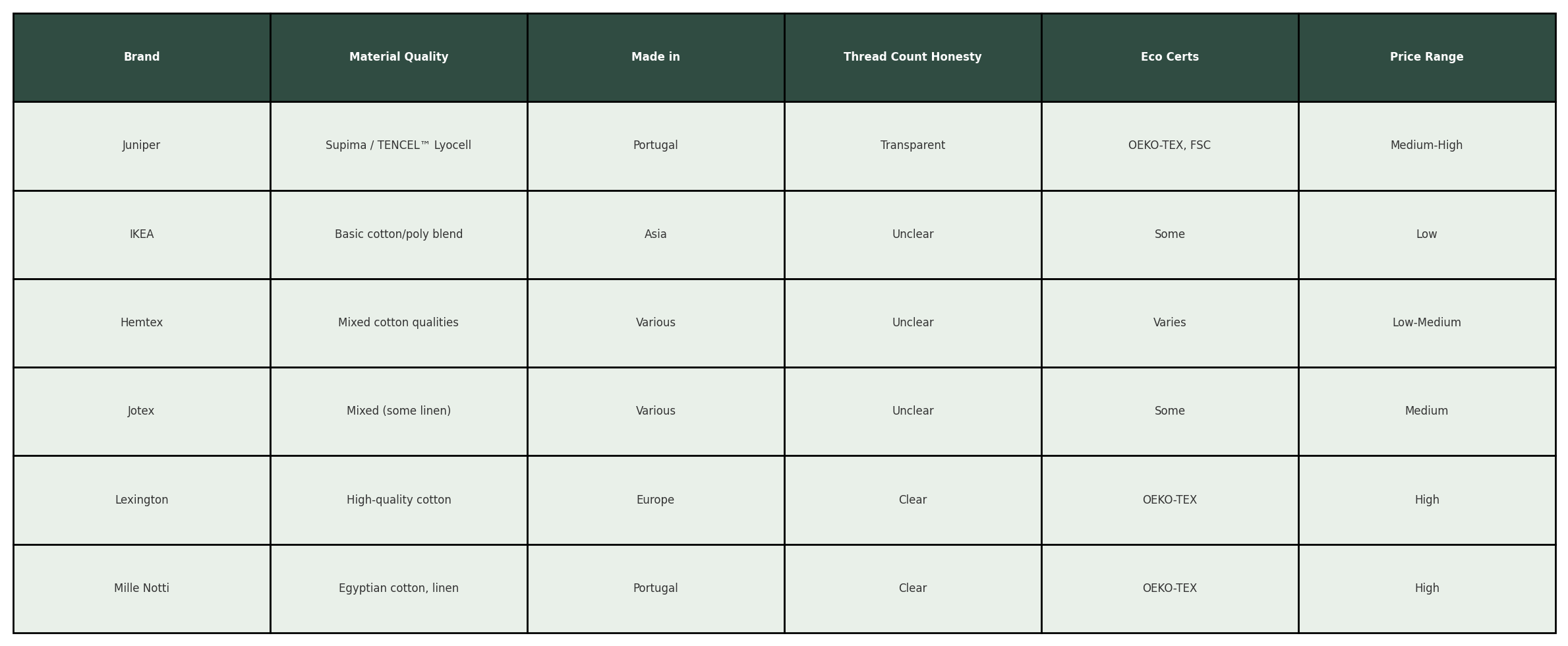 Juniper anvĂ€nder premiumfibrer som Supima och TENCELâą, tillverkade i Portugal med OEKO-TEX-certifiering. Medan IKEA eller Hemtex erbjuder lĂ€gre priser och lĂ€gre kvalitet, Juniper fokuserar pĂ„ lyxig kĂ€nsla och lĂ„ngsiktig hĂ„llbarhet.